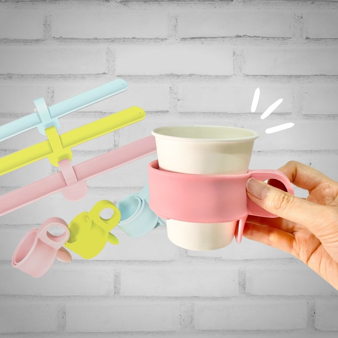 どんなドリンクでも、巻きつけるだけで持ちやすくなるドリンクホルダーの「ハグバー(HUGBAR)」です。